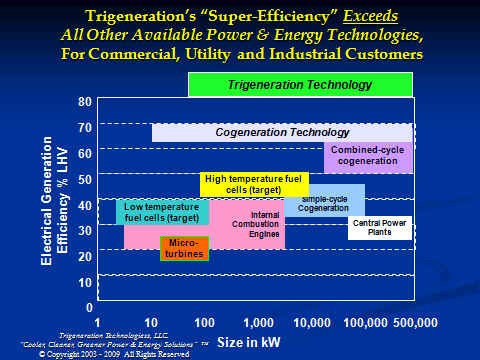 Trigeneration sm Energy Systems Provide Simultaneous Cooling, Heating & Power whether it is 12 Noon, or 12 Midnight, and can do so, WITHOUT Connection to the electric grid!